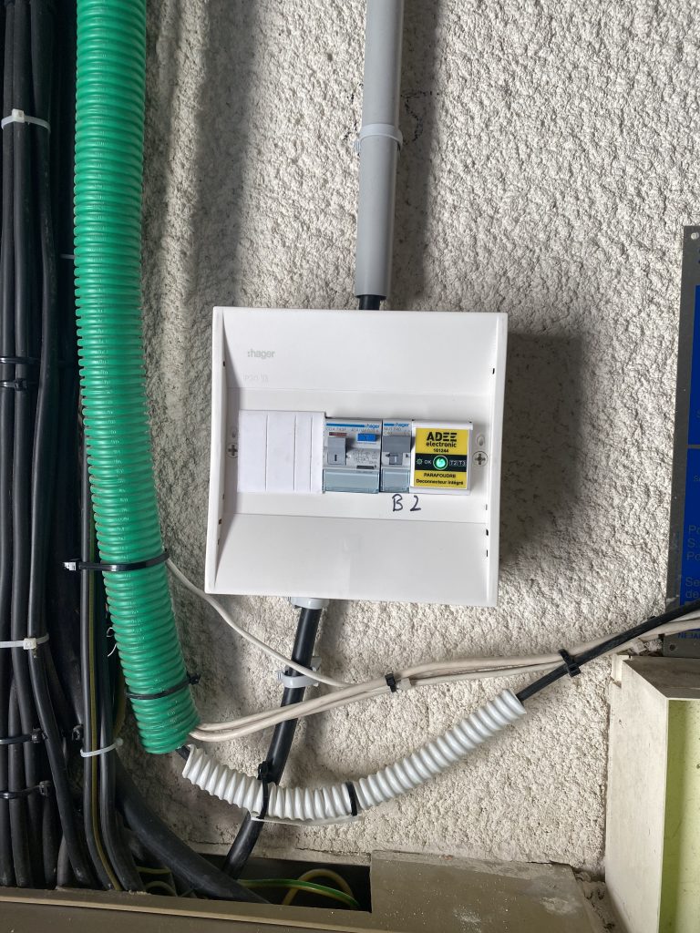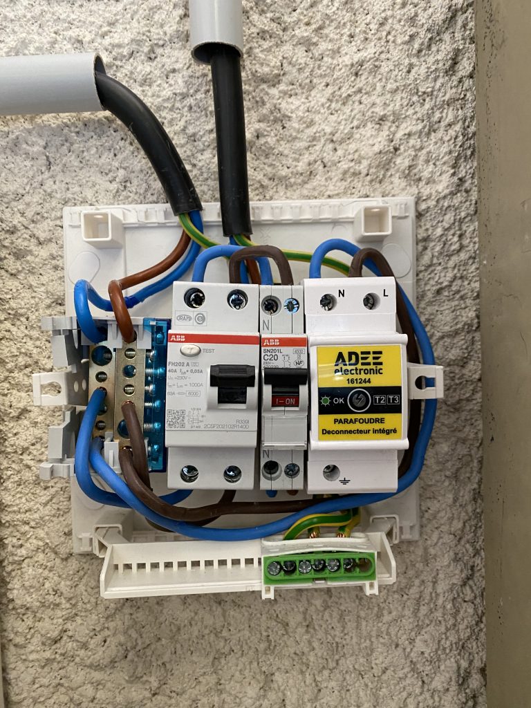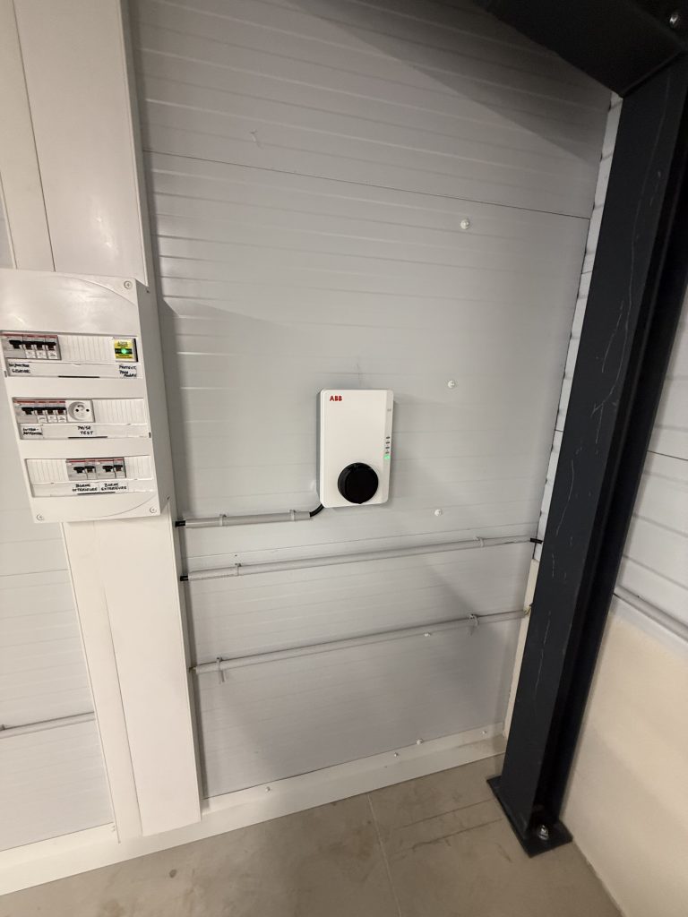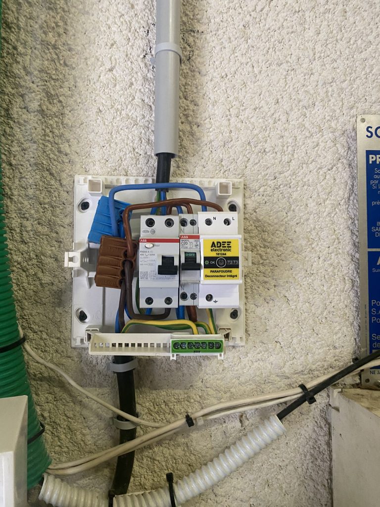 Installation d’une autre borne de recharge ABB avec protection parafoudre.
